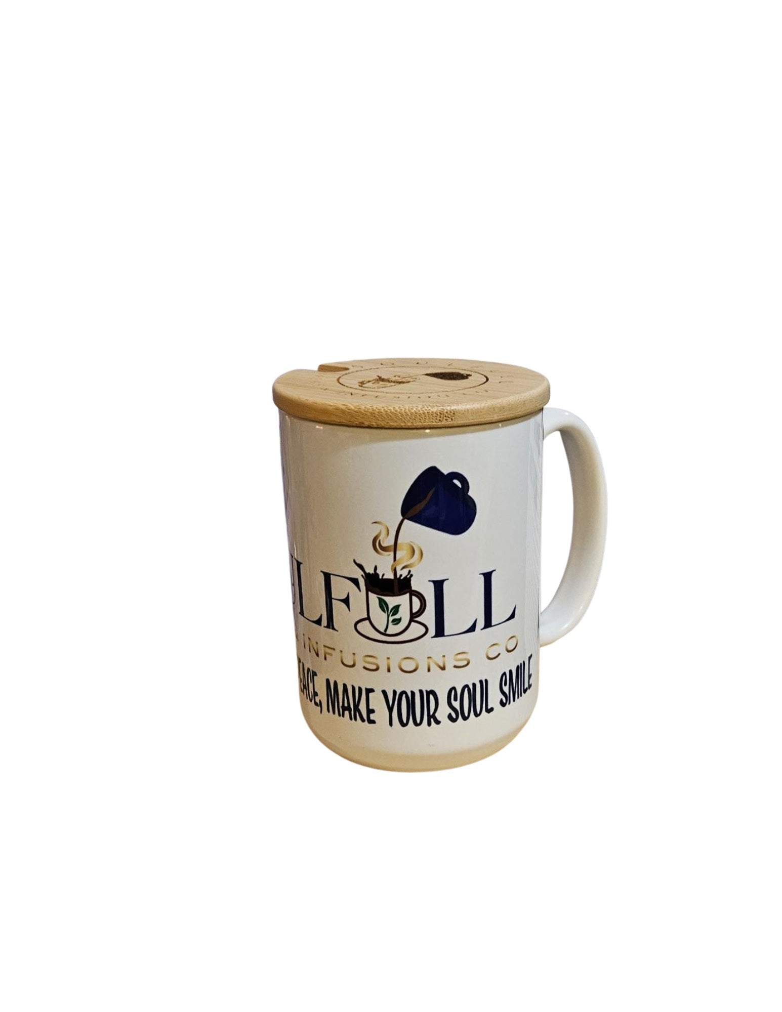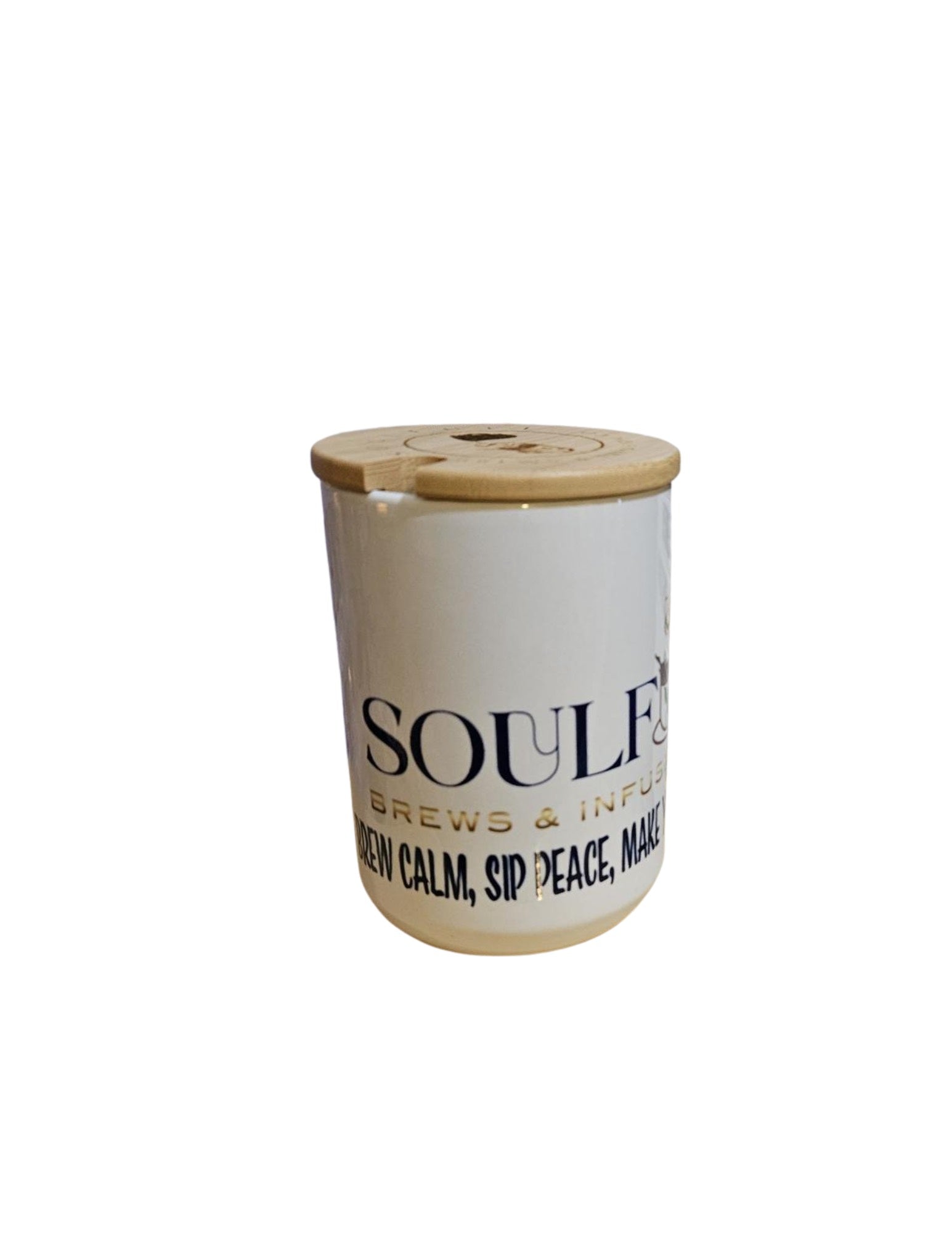 The Brew Calm Mug is more than just a mug—it's a moment of peace. Crafted from high-quality ceramic, this mug features the empowering message: "Brew Calm, Sip Peace, Make Your Soul Smile." The unique wooden lid keeps your brew warm and doubles as a coaster. Perfect for your favorite mindful brews and infusions.